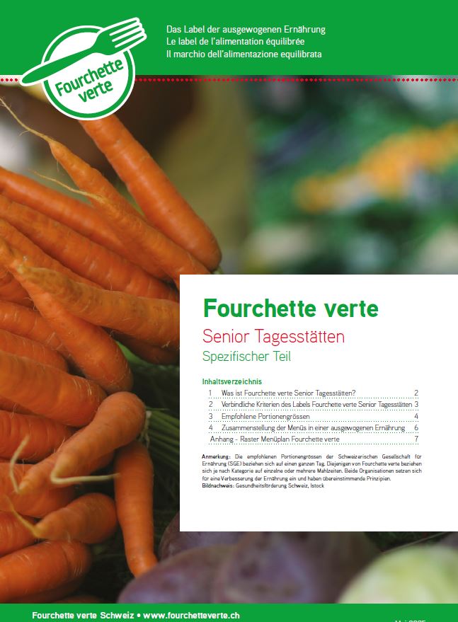 Die Ernährungskriterien der Labels Fourchette verte und Fourchette verte - Ama terra basieren auf den offiziellen Empfehlungen des Bundesamtes für Lebensmittelsicherheit und Veterinärwesen (BLV) und der Schweizerischen Gesellschaft für Ernährung (SGE).